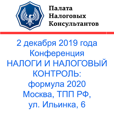 | Палата налоговых консультантов приглашает 2 декабря на конференцию «Налоги и налоговый контроль: формула 2020» Почему важно участвовать? |