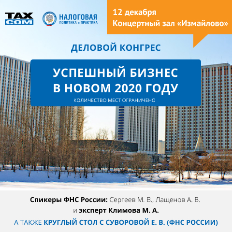 | Наш партнер компания «Такском» 12 декабря приглашает вас принять участие в зимнем Деловом конгрессе «Успешный бизнес в новом 2020 году» Место проведения: Концертный зал «Измайлово» (Измайловское шоссе, д. 71 корп.5) Время проведения: с 10.00 до 16.30, регистрация с 9.00. Регистрация на мероприятие и подробная программа на сайте организатора |