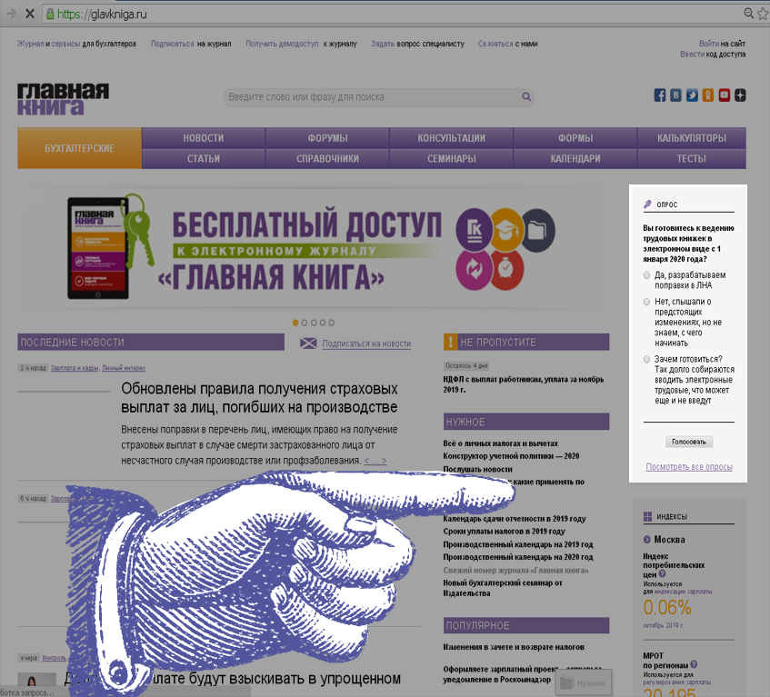 | Вы готовитесь к ведению трудовых книжек в электронном виде с 1 января 2020 года? Примите участие в опросе на сайте |